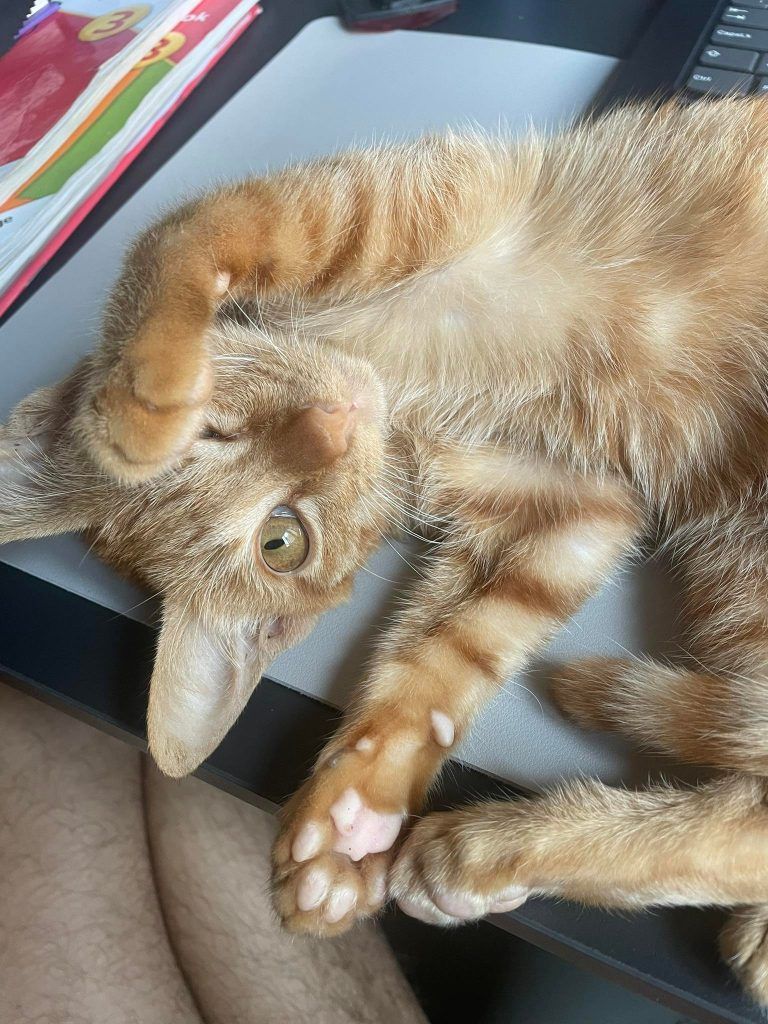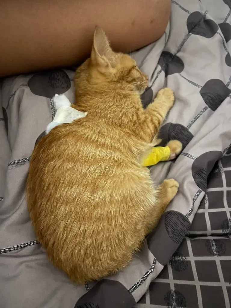 Pumpkin came into the Adopt Meow scene about a month ago when he was rescued by long time member Mayuree Snoopy. Due to his level of socialization and health status at the time of rescue, Pumpkin was placed directly into foster care. About a week after being with his foster parents Amanda Bledsoe and Harvey, they noticed Pumpkin was having concerning symptoms. They swiftly brought him to our main veterinarian, Dr. Fon at โรงพยาบาลสัตว์เชียงใหม่เซ็นเตอร์ (Chiang-Mai Center Animal Hospital) where he was diagnosed with Feline Panleukopenia (also referred to as Cat Parvo or Distemper). The few days after diagnosis were long, sleepless, and filled with anxiety for all of us at Adopt Meow, but especially Amanda and Harvey. Pumpkin went days without desire to eat, drink, or move. We all feared he might pass, as many kittens just can’t pull through this illness.