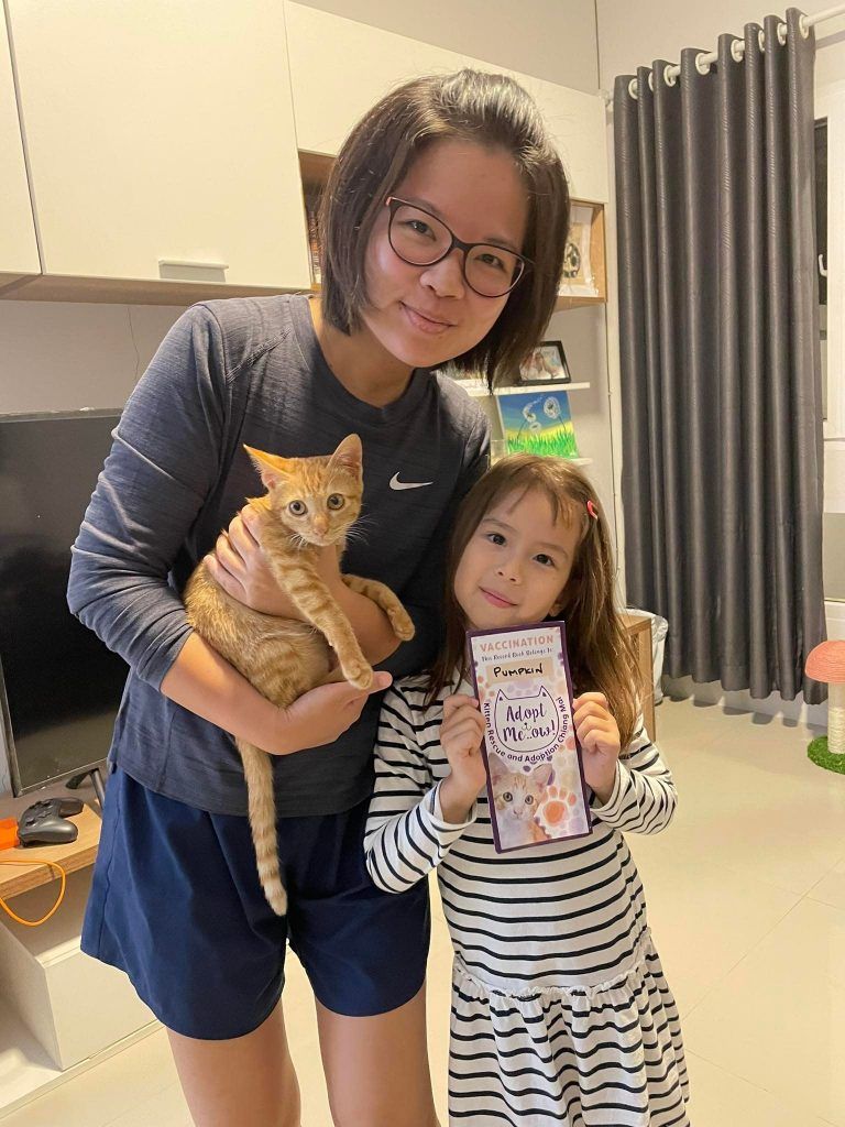 Right before Pumpkin was diagnosed with panleukopenia, he was visited by a sweet family who decided to adopt him. Unfortunately because of his illness they had to wait 2 full weeks until he recovered before they could go pick him up. They waited patiently which ended up paying off on the day they picked up their new and fully recovered little Pumpkin.