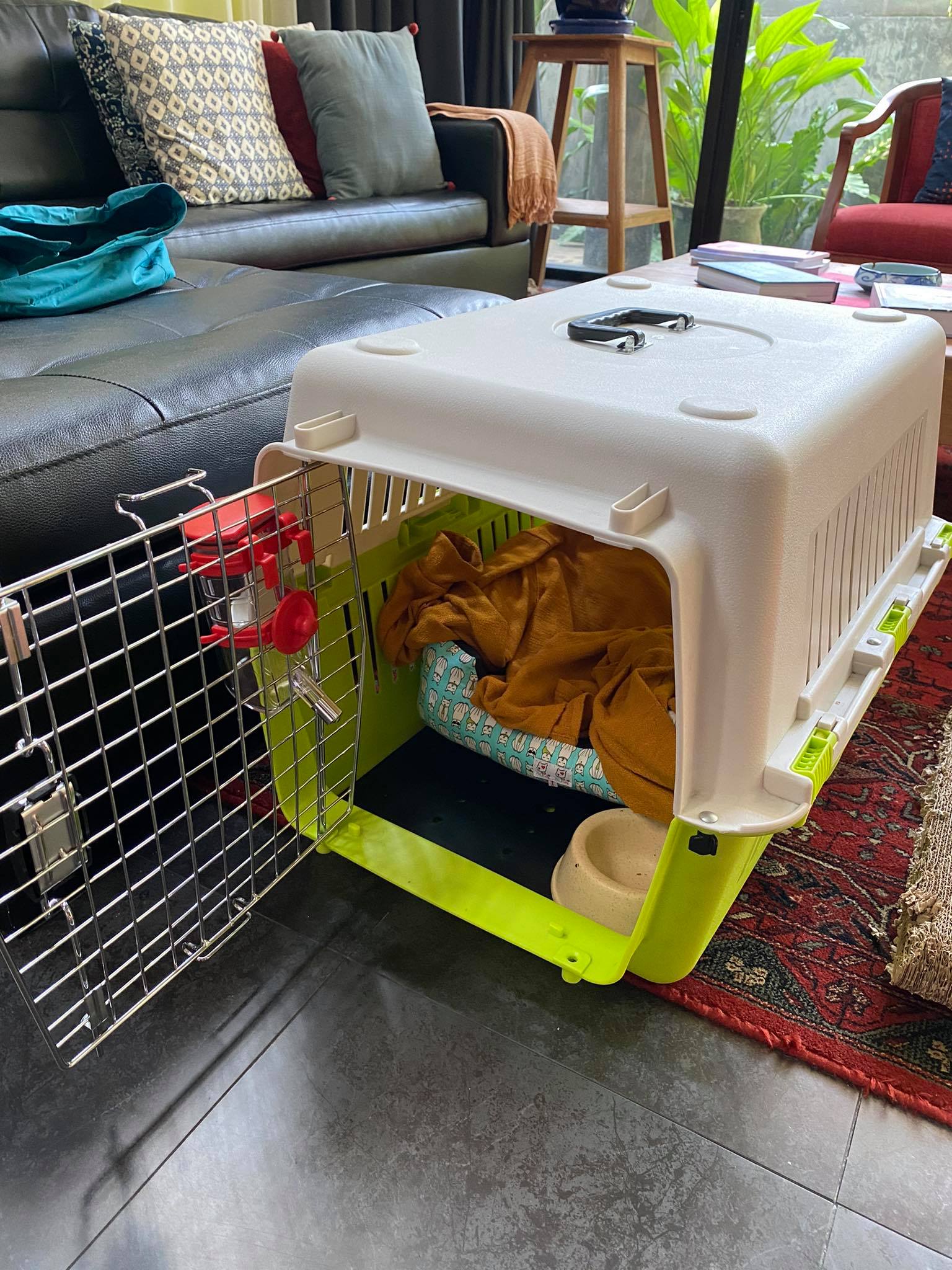Many airlines give specific sizing guidelines dependent on the size of your cat, to ensure they have enough space and headroom, so make sure you research what your airline requirements are. You can buy airline approved crates on Lazada, or at some pet stores around the city.
