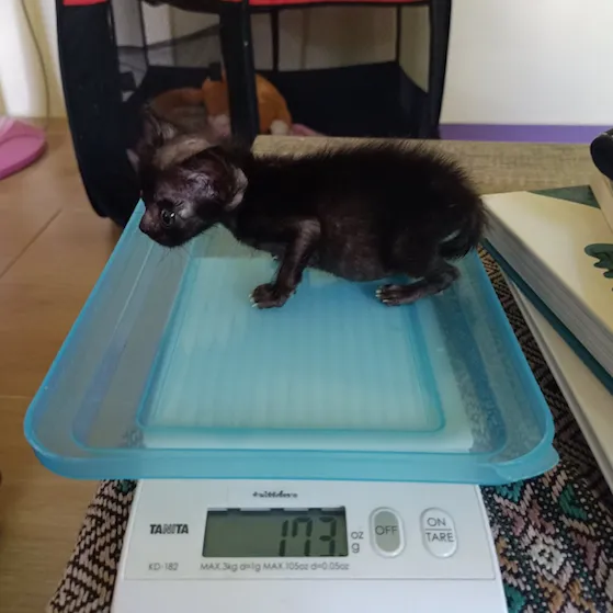At the age of six weeks now, Sky is still very tiny, weighing just 180g (compared to the average of 680g for that age!!), but as we are incorporating more wet food into her diet she is starting to gain more and more weight every day (one day this week she even gained 15g- I nearly cried with happiness!!). We can only hope that this continues and she will eventually reach a healthy weight and size. She is becoming incredibly playful and getting great at walking around the house and exploring her home outside of her “safe zone” (aka her play pen). We have two other two month old kittens in our house also, so we have to be careful as they are a little too rough for her, but I hope one day in the future she will be able to join in on the fun! We feel so lucky and blessed that Sky found her way into our lives, she is the most precious kitty I have ever cared for and I hope she can live a healthy and happy life with us.